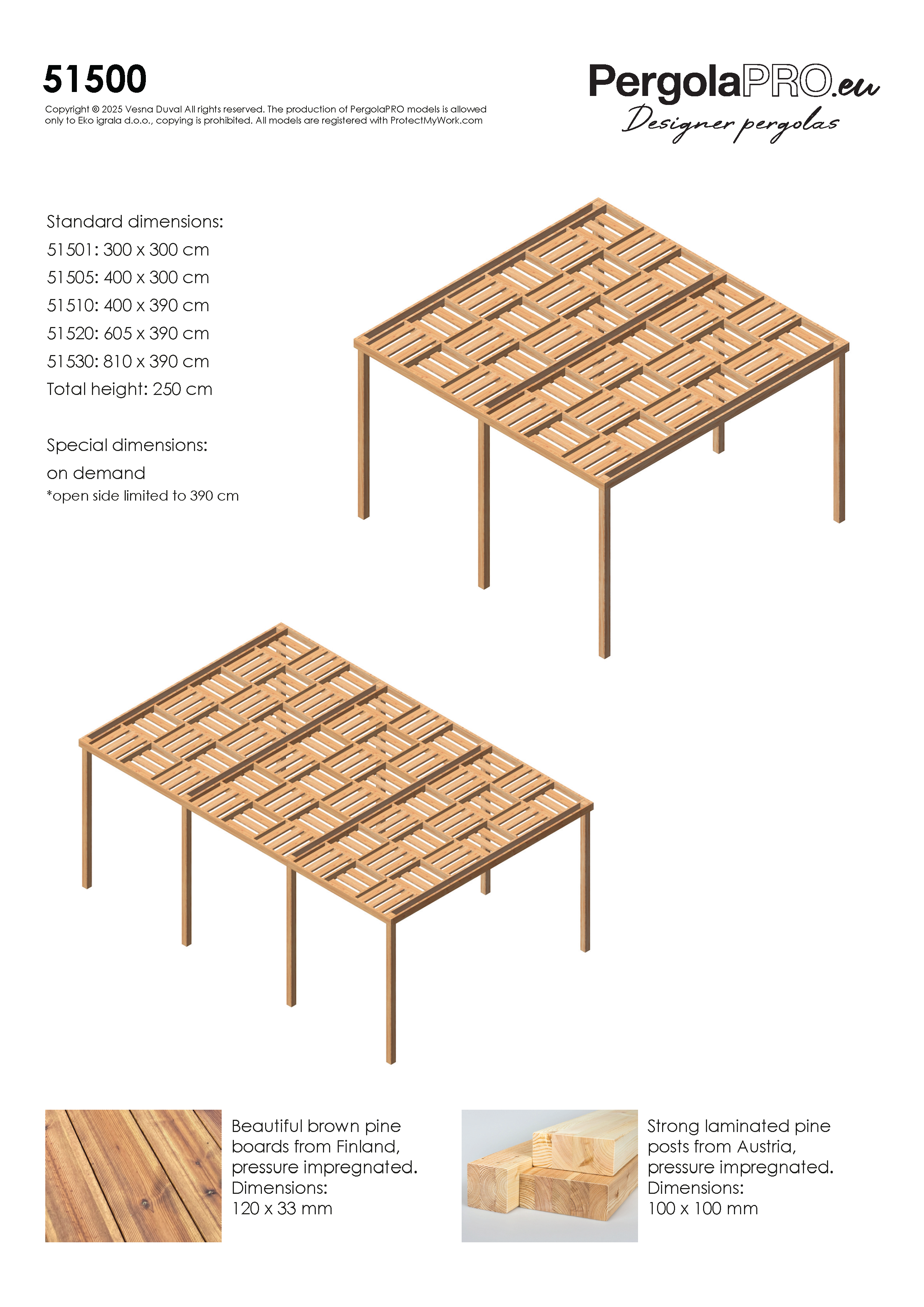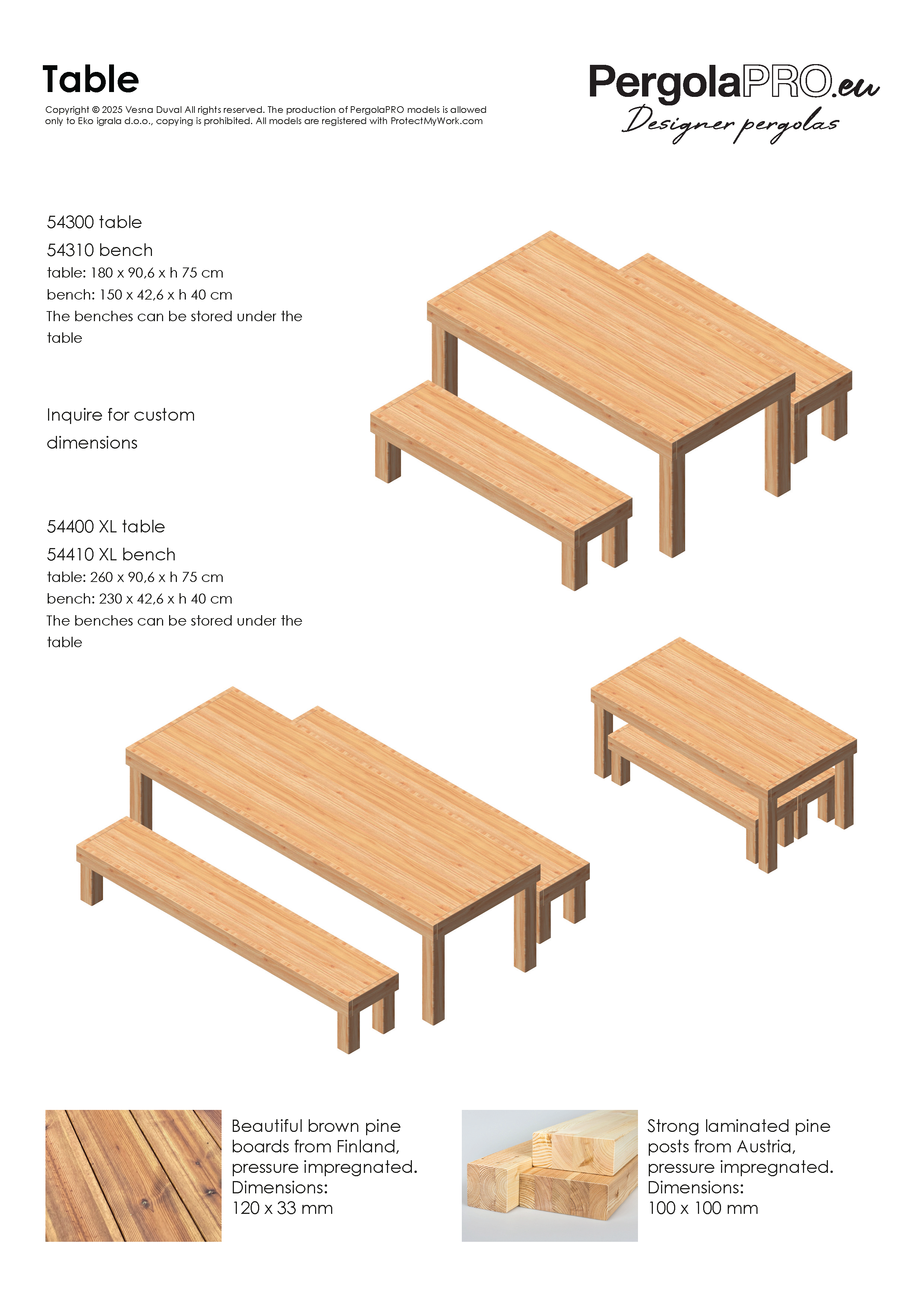 Our structures are made of high-quality, pressure-impregnated pine wood, bringing warmth, functionality, and aesthetic value to your home or garden