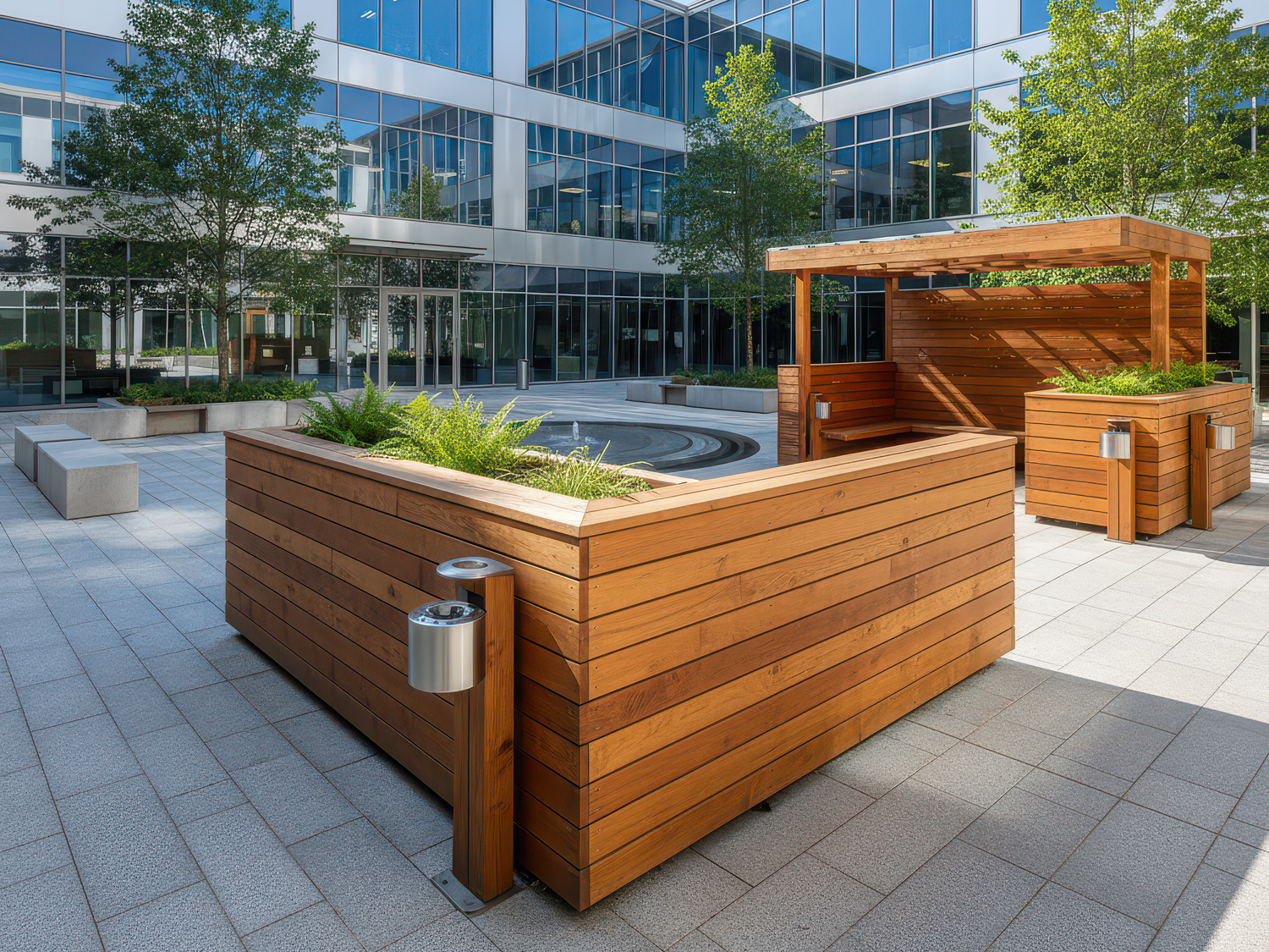 - outdoor reception counters, smoking corners, towel stations,