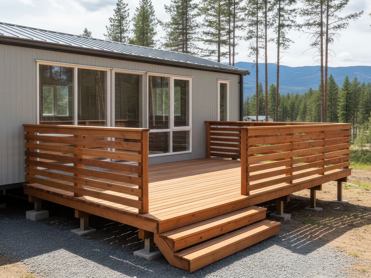 - raised terraces: for sloped terrain, in front of mobile homes, or beneath glamping tents,
